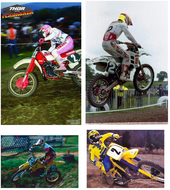 …. nevím ,jak u vás , ale u nás venku je hnusně, že by ani psa na trať nevyhnal…..motorek mám už plnou hlavu, tak jsem dostal takový nápad… zavzpomínejme spolu na jezdce, kteří se nesmazatelně zapsali do výsledkových listin závodů Mistroství světa v letech 1980 až 2003 . Domnívám se, že v těchto letech zažíval světový motokros svůj absolutní vrchol….aby to bylo ale trochu jiné, věnujme se jezdcům , kteří sice byli světovou absolutní špičkou, ale protentokrát vynechám všechny ty legendární mistry světa a něco málo tady napíšu o jezdcích , kteří se proslavili, jako slavné dvojky a vozili na svých „number plate“ startovní číslo 2.